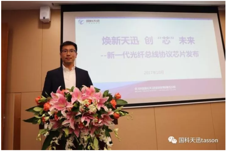 国科bsports网页版登录入口-B(中国)市场部经理徐俊亭为大家讲解并发布国内高可靠光纤通信领域的首款总线协议芯片产品。